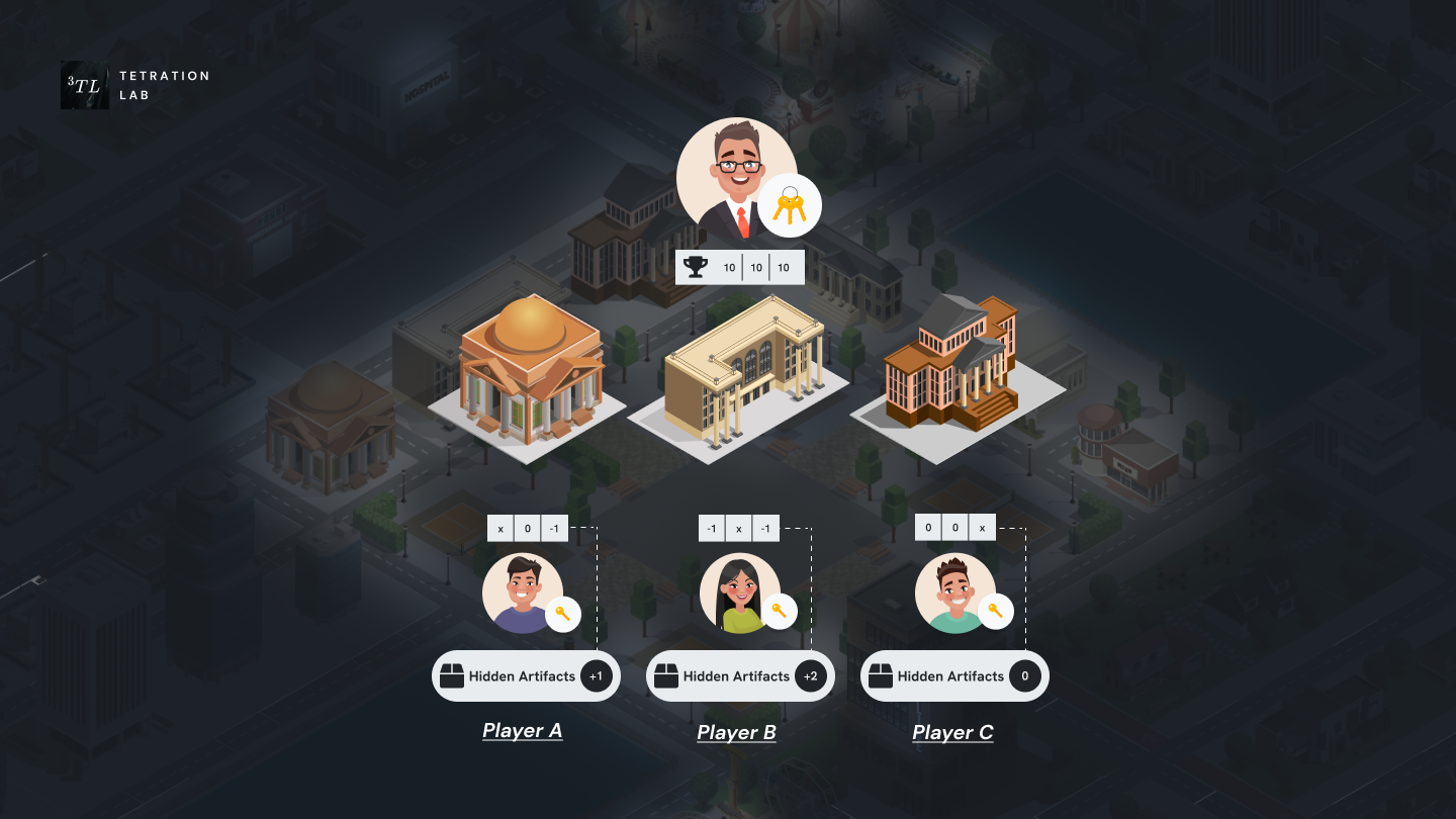 At night, the mayor holds the key to every museum's balance while each museum owner has the key to their secret vault.